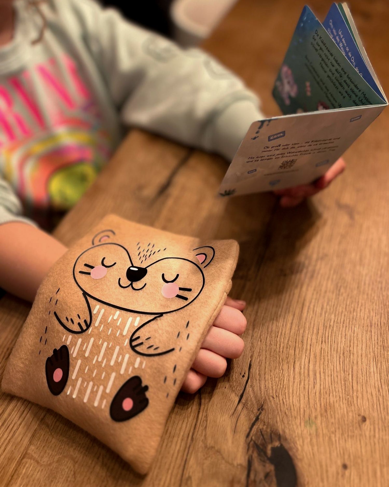 Mit dem aufgedruckten QR-Code kannst du und dein Kind jederzeit die Abenteuer von Koala Karla, Otti dem Otter und ihren Freund*innen entdecken.